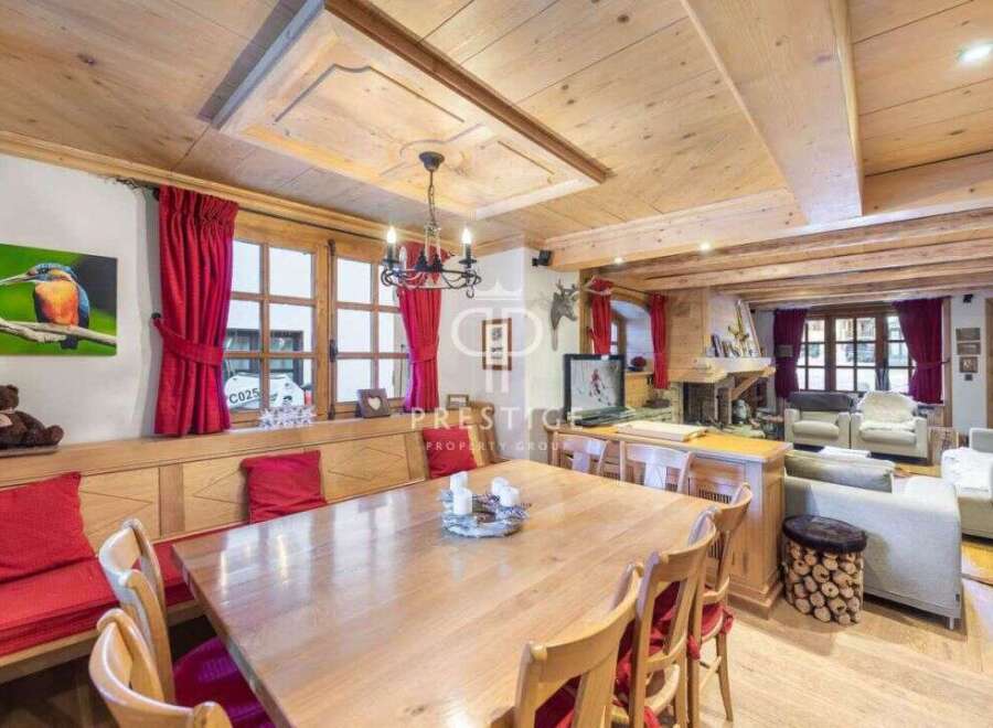 Beautifully presented throughout, this spacious and luxurious 5 bedroom ski chalet is ideally situated in a strategic location right in the heart of 1300 Le Praz skiing resort, just 200m from the ski slopes and shops. With an inviting living area of 180m2, features include: entrance hall with a ski room, living/dining room with a fireplace, fully fitted and equipped kitchen, 5 bedrooms and 5 bathrooms (including a superb master suite on the top floor).Ample room to receive up to 10 guests in opt...