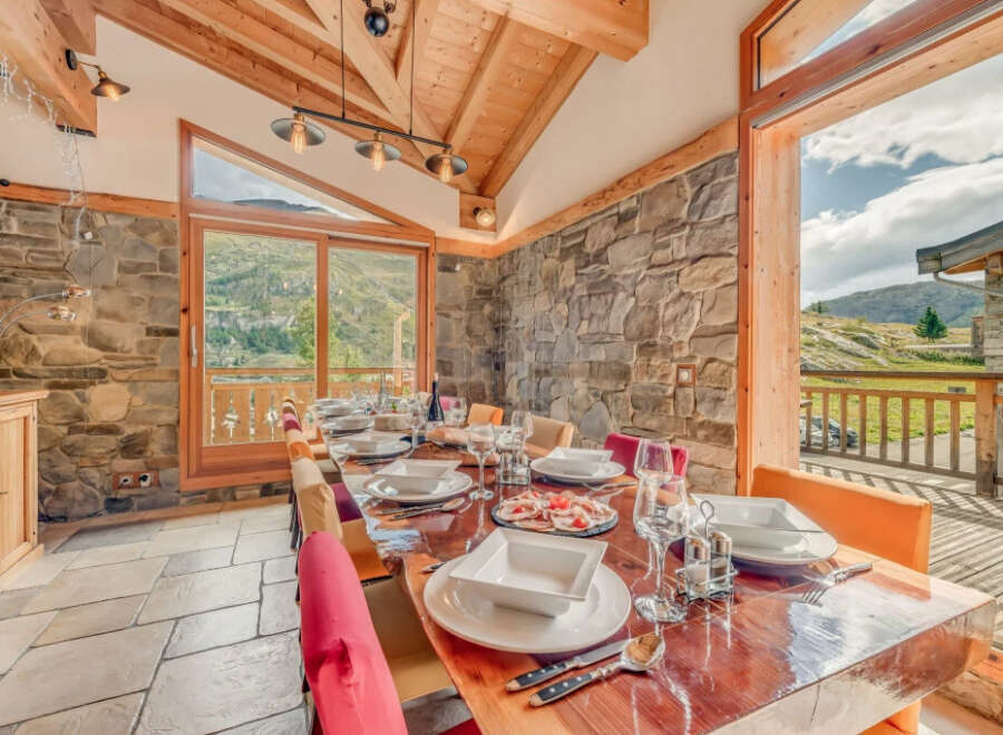 Located in the peaceful and sought-after area of Tignes Les Boisses, this charming 240m2 chalet enjoys triple exposure and panoramic mountain views. With five en-suite bedrooms and a bright, south-east facing living space, this property offers generous volumes and seamless access to the slopesjust 300 metres away, with the possibility to ski directly back to your door.Spread over three levels, the ground floor includes a spacious garage, ski room, and an en-suite double bedroom with direct acces...