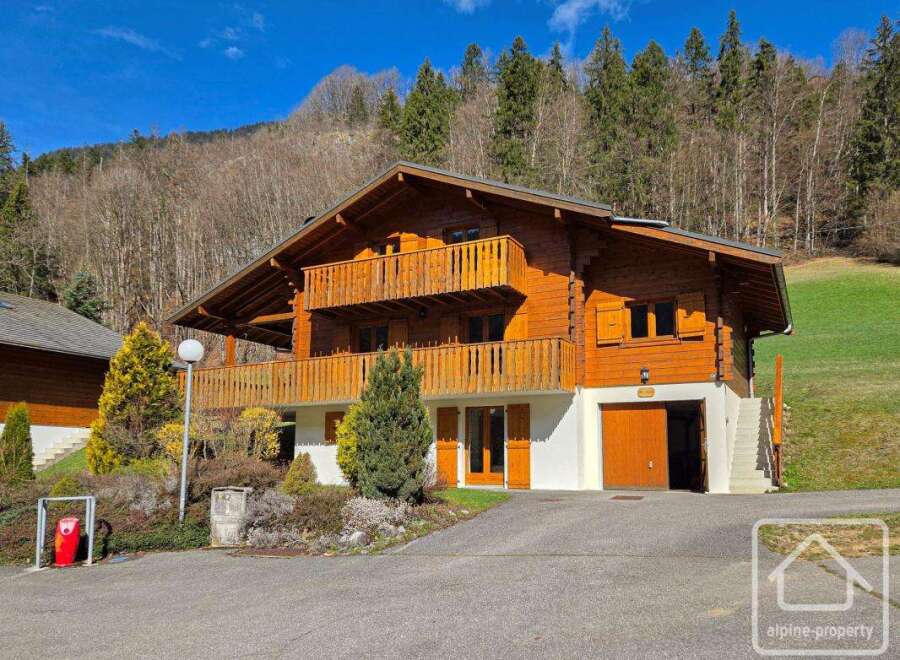 Chalet Pelerin is a modern and spacious six bedroom chalet in a sunny location just outside of Abondance. Built in 2005, the property is in excellent order throughout and comprises; On the lower ground floor: Garage, hallway/laundry room, two bedrooms, shower room, boiler room. On the ground floor: Open plan living, dining and kitchen area with wood burning stove, access to the sunny covered terrace, entrance hall with cupboards and visitor toilet, double bedroom with ensuite bathroom. On the...