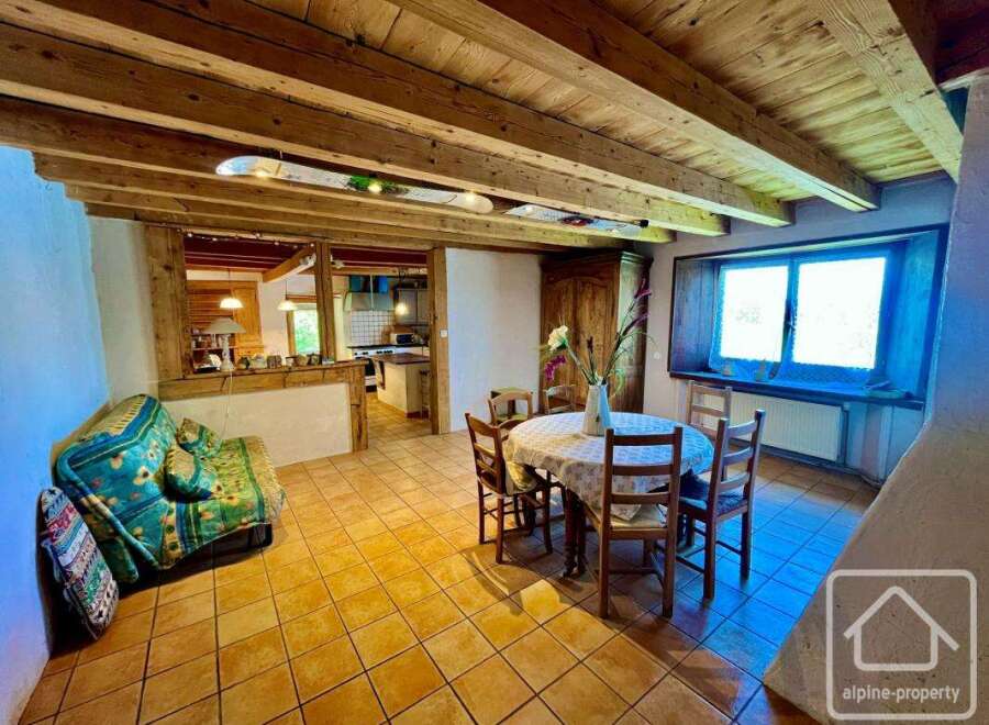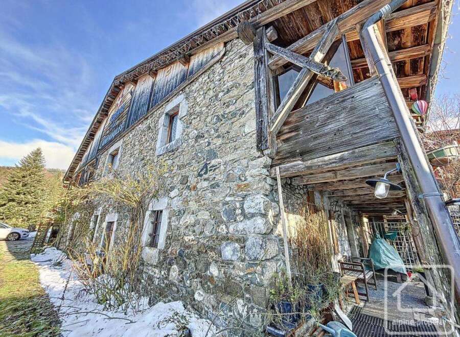 Located in the Nants area of Les Carroz, 1.5 km from the village centre, the Campanules farmhouse, dating back to 1720 for its lower part and 1839 for the upper part, has retained its old charm. It already offers 182m2 of living space and the opportunity to develop an additional 300m2. The lower part, with its large exposed stone walls, has been partially renovated to house a restaurant that shut several years ago. The original entrance door and inscriptions on its stone lintel attest to the au...