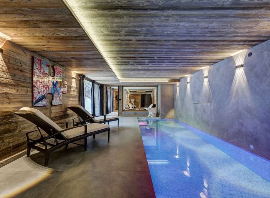Chalet Iles is a stunning, newly-built 5-bedroom chalet, a few hundred metres from the Grands Montets ski area and Argentière. The chalet, of nearly 400m2 total, has a sizeable (78m2) open-plan living space opening onto a large, south-west facing terrace with wonderful mountain views including Mont Blanc and the Aiguille du Midi. This highly-efficient chalet (DPE-rating A) has impressive leisure amenities including a 10-metre indoor pool, sauna and cinema room. It sits on a large plot of over...