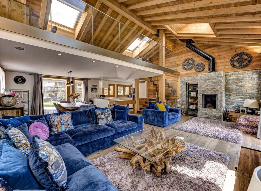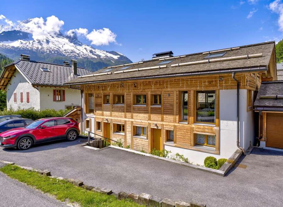 A modern, recently built 4/5 bedroom, 4-bathroom demi-chalet in the heart of les Frasserands. The property is on three levels with bedrooms at ground and lower-ground level, plus a mezzanine above the living space on the first floor. The master suite has an adjacent room which is currently used as a large dressing room, but could equally be a 5th bedroom. The living area has impressive double height and opens onto the south-facing balcony with wonderful views of the peaks including Mont Blanc...