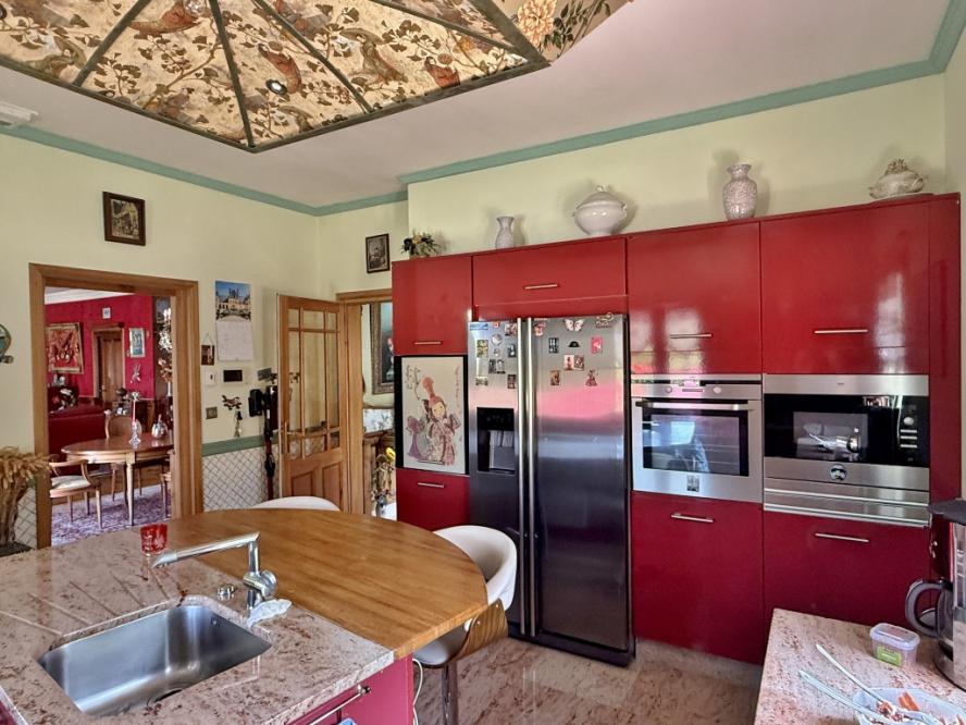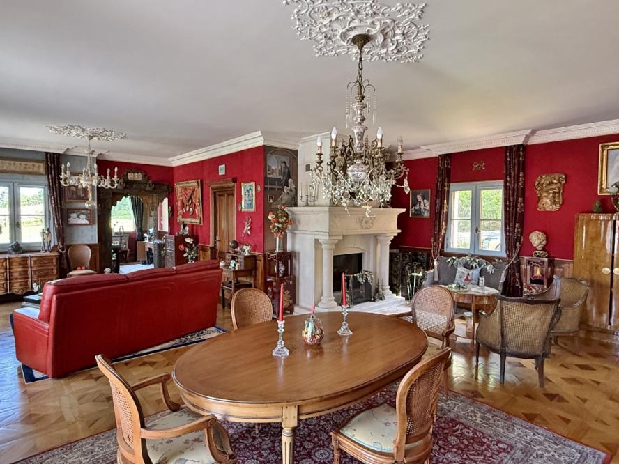 MAIN HOUSE (approx. 250 m2) : Ground floor: entrance hall with stairwell 18 m2, living room with fireplace 54 m2, opening onto west-facing terrace, fitted kitchen/diner 18 m2, study or bedroom 15.5 m2, shower room 10 m2, utility room 6 m2, separate WC and double garage/workshop 36 m2. Cellar. First floor: 11 m2 landing, four bedrooms, one of which is en suite with dressing room, bathroom and shower (38, 26, 16 and 13 m2), shower room with WC, linen room, separate WC. One bedroom has independent ...