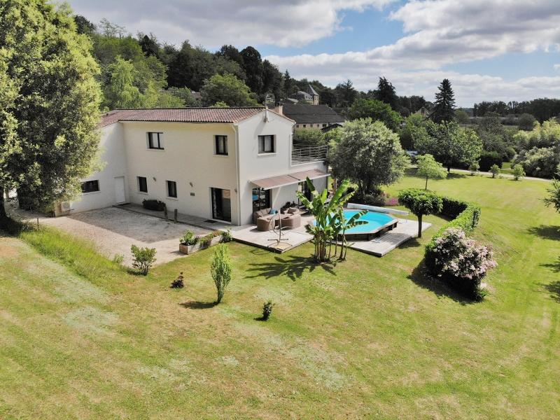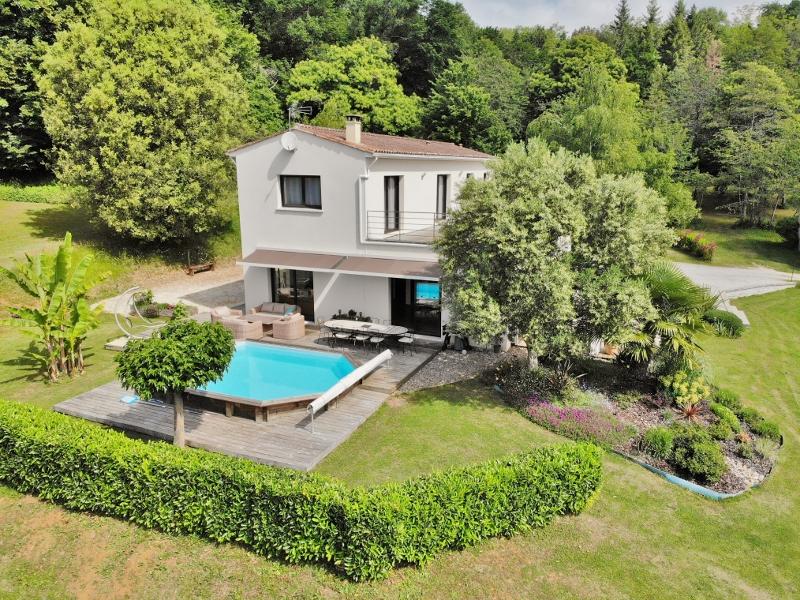 House comprising on the ground floor : Entrance hall with cupboards leading to the large living room with open-plan kitchen as well as the night space and its 3 bedrooms sharing a very nice bathroom and wc, utility room giving access to the garage.First floor : The master suite comprises a bedroom, dressing room and shower room with wc.Outside : Swimming pool, 5500 m2 of land.More information : Quiet location, close to shops, south-facing, swimming pool, very pretty wooded grounds, property ta...