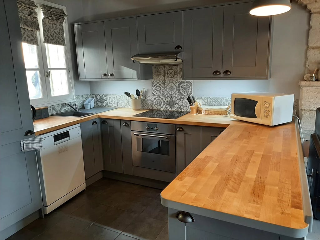 This is a well renovated and comfortable house within the sought after market village of Aubeterre sur Dronne known as one of the prettiest villages in France (designated a Plus Beaux Villages). The accommodation comprises a large open plan kitchen, sitting room, dining area of 46 m2 with a sunny balcony looking out towards the river, ideal for dining or a relaxing drink. There are two bedrooms and two bathrooms one of which is ensuite. Both bathrooms are modern and well appointed. High speed br...