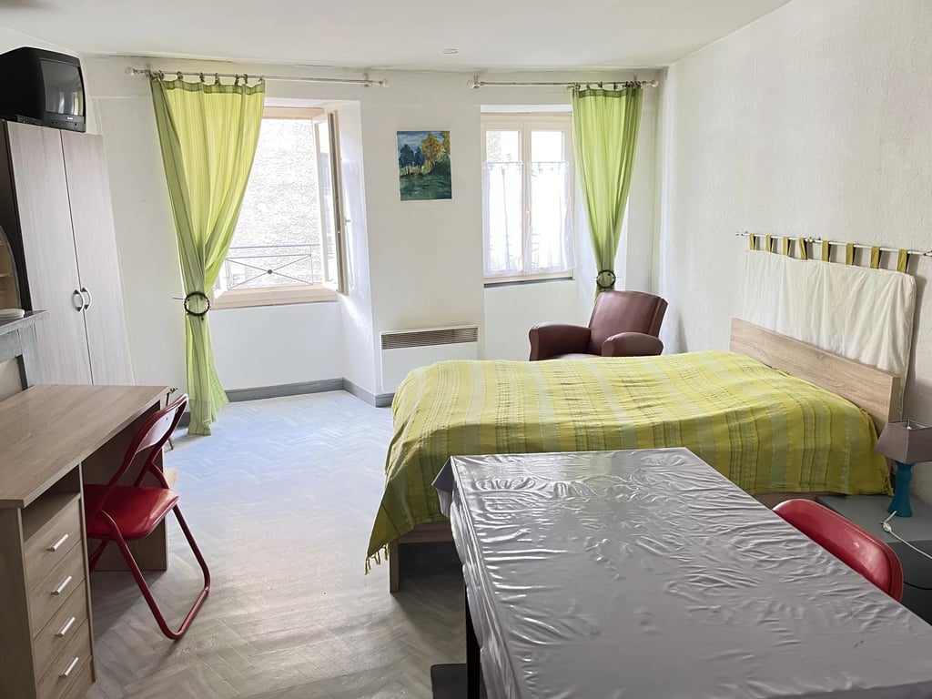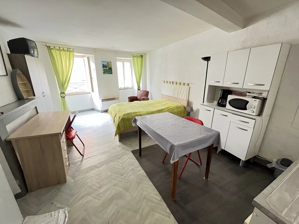A single building with 2 separate incoming producing apartments. Studio with separate shower room and wc. Currently vacant. 2nd floor apartment: Living room/kitchen, bedroom and separate shower room with wc. Currently rented. No garden but communal area on street level for storage, or to make another small studio (subject to necessary permissions). Located in the centre of Bellac Price including agency fees : 81.400 € Price excluding agency fees : 74.000 € Buyer commission included: 10 %