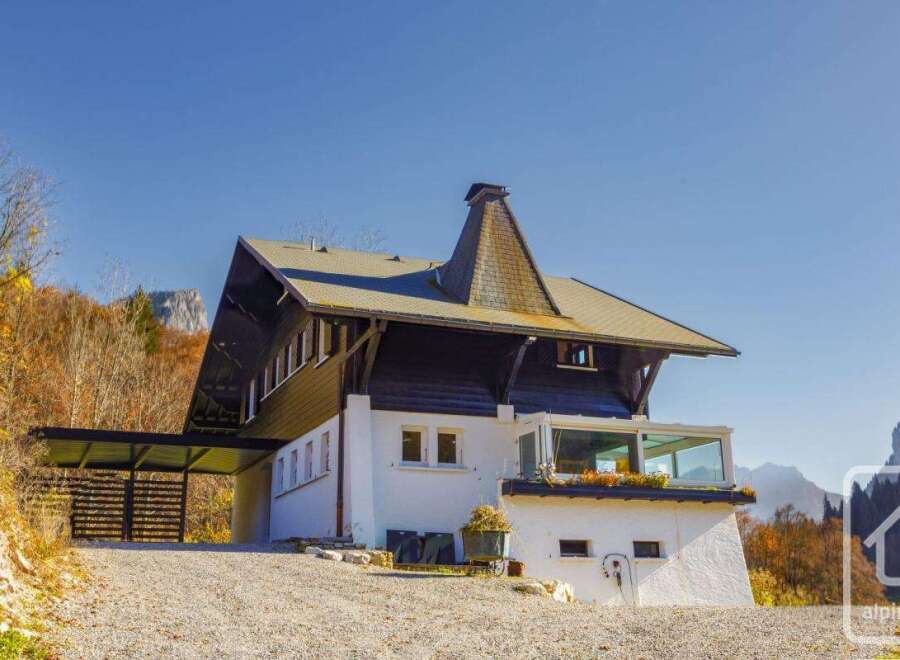 This chalet was built in 1946 and designed by Maurice Novarina, a renowned French architect. It is situated on sloping land offering fabulous south-facing views down the valley du Risse and towards le Roc d'Enfer. The property has been recently renovated to a high standard whilst keeping the integrity of the original Architect's design. The ground floor has an entrance hall opening to the living/dining room with both a fire place and a log burner. There are French windows opening onto a wonderf...