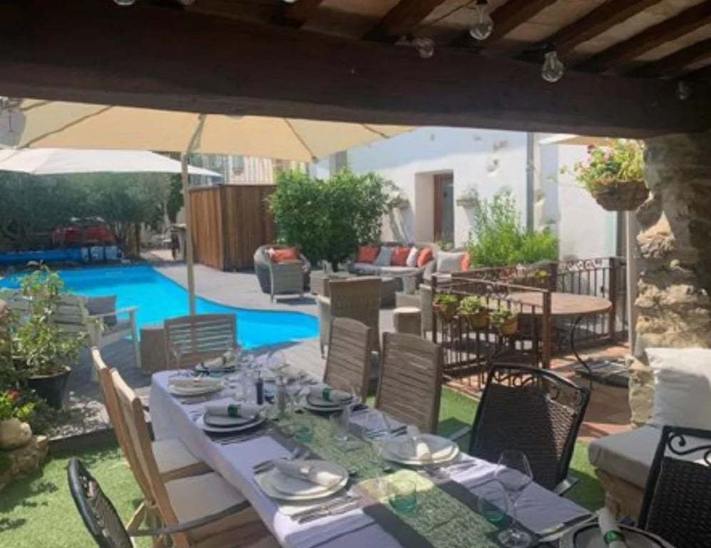 St Genies de Fontedit near Beziers, Herault Renovated stone house in the heart of the village and the Languedoc vineyards, 30 mins to the beaches and Béziers airport, this stone village house has undergone a superb renovation. The ground floor features a 50 m2 living room with a fully equipped kitchen opening on to the patio garden with its swimming pool, a terrace, a covered terrace with a fireplace, and a relaxation area. On the ground floor, there are two master suites, a second relaxation l...