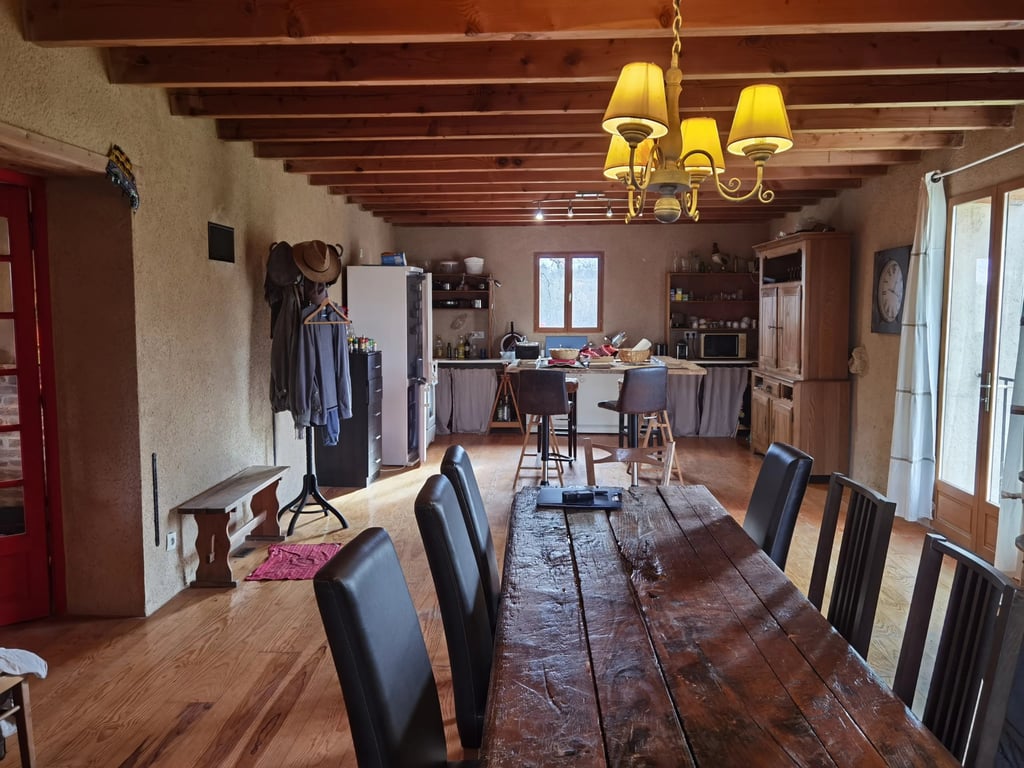 Spacious 220 m2 Farmhouse with Guest House and Equestrian Land near Moissac. Set in a stunning natural environment just ten minutes from the town of Moissac, this character farmhouse offers approximately 220 m2 of habitable living space and enjoys a peaceful, private setting, an ideal project for family life, nature lovers and equestrian use. The ground floor opens onto a generous entrance hall with a cosy mezzanine. A bright living room of around 39 m2 features a fireplace with a wood-burning i...