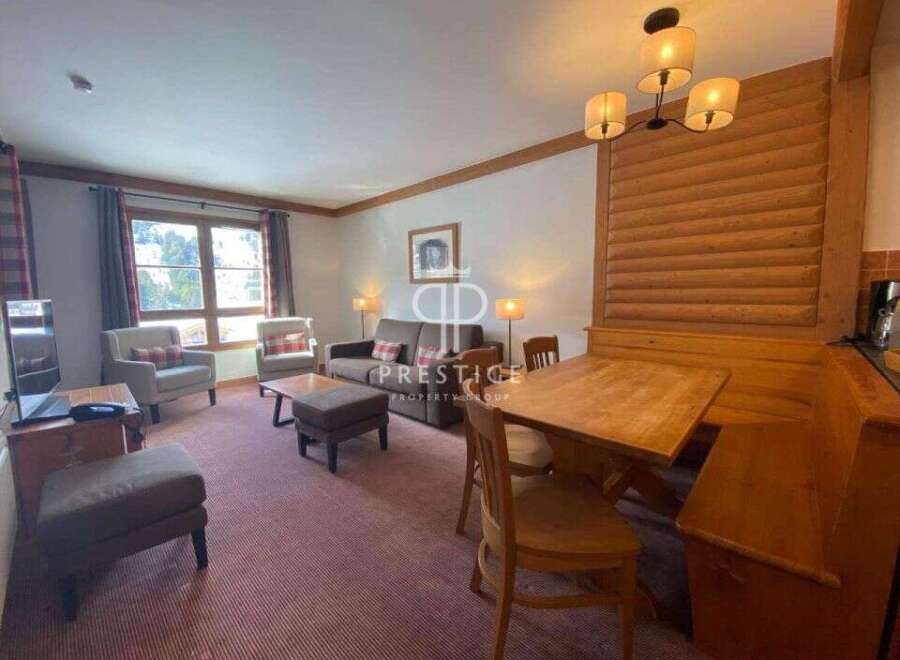 Inviting 2 bedroom apartment, which is ideally situated within a quiet and exceptional setting in Les Arcs 1950. South facing, in perfect condition and with a total living area of 58m2, features include a fully fitted and equipped kitchen opening onto a bright living room, 2 beautiful bedrooms, shower room, bathroom and a superb 17m2 sunny terrace with lovely views of the ski slopes. Sold furnished with a cellar, ski locker and a covered parking space. Access to the residence's wellness areas.