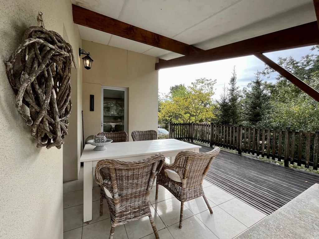 Always wanted to own an affordable holiday home in the South West of France? Then this all on 1 level, 3 bedroom, 2 bathroom villa in a leafy area close to a lake with sandy beach is ideal for you. It has 2 double bedrooms, one with en suite shower room, and another room with bunk-beds with a shared shower room with WC. The open plan spacious and bright living / dining room with fully equipped kitchen has double doors opening onto the terrace, ideal for warm evenings. Outside there is a deck...