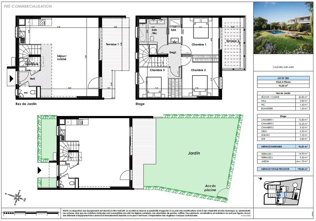 Cagnes-sur-Mer, Alpes-Maritimes Private Domaine located in the sought-after residential area of Gros Buaux, in the heart of a lush forest and comprising of 3 newly built semi-detached villas offering high specifications, access to a communal pool, two allocated external parking spaces, air-conditioning, choice of 80x80cm floor tiles. The two-storey properties includes 96.20m2 of living area with 3 bedrooms, 2 bathrooms, a terrace on each floor, private gardens between 70m2 and 300m2, each with...