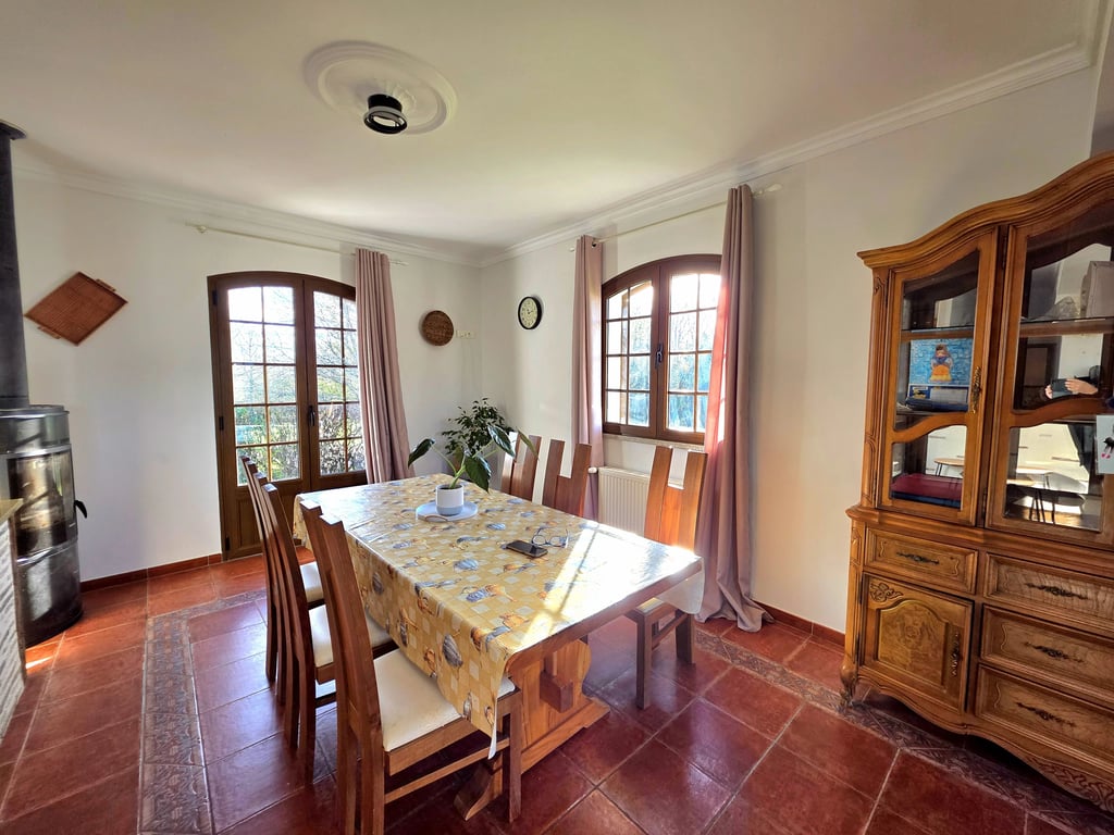 A purpose-built modern family home with an indoor swimming pool and generous terraces. The ground floor features a spacious open-plan living room with the kitchen to one side and windows facing in three directions, creating a bright and airy feel. To the rear, there is an adjoining office area, and a hallway decorated with attractive Portuguese wall tiles leads to two ground-floor bedrooms (11.3 m2 and 12.7 m2), the larger of which includes built-in wardrobes. This level also offers a family ba...