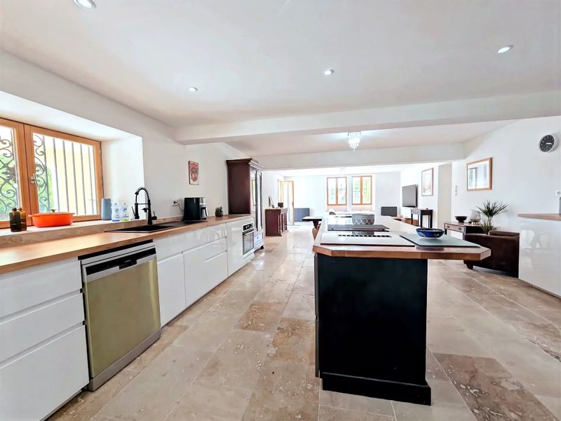 This 5 bedroom Maison de Maitre has lovely views, large pool, 4 acres of land and is within easy reach of shops and services. The property has been beautifully renovated and manages to strike the perfect balance between the traditional and the contemporary.There's a generous 380m2 of habitable space and the accommodation is set out over 3 floors.Garden Level:The lower garden level serves as the central hub for daily life and entertaining. A large open-plan space (over 80m2) combines kitchen (bra...