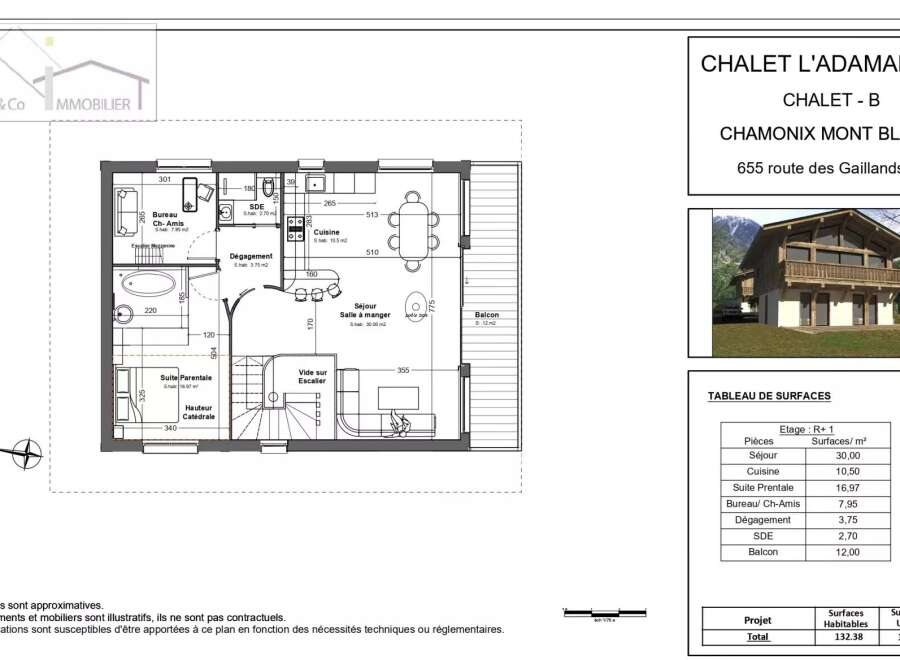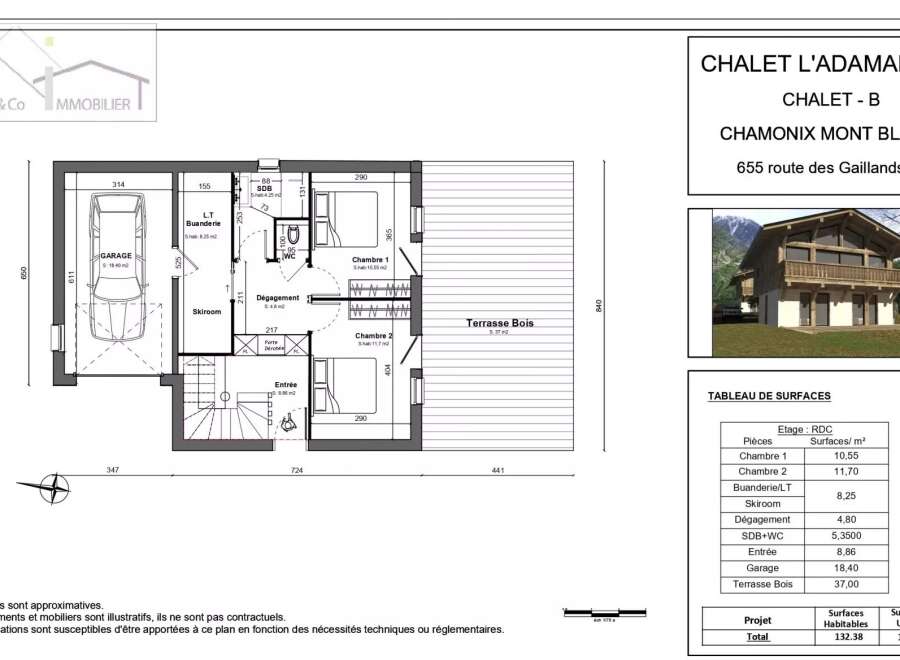 Discover this magnificent 158 m2 chalet in the heart of Chamonix-Mont-Blanc. Comprising four bedrooms and five rooms, it offers comfortable, modern living space. Enjoy the warmth of the fireplace, ideal for snowy evenings. This chalet combines modernity and comfort with state-of-the-art features such as home automation, double glazing and fiber optics. Electric blinds and awnings ensure controlled light and thermal comfort all year round. What's more, an intercom system ensures your home's secu...
