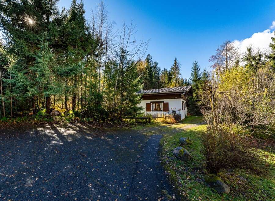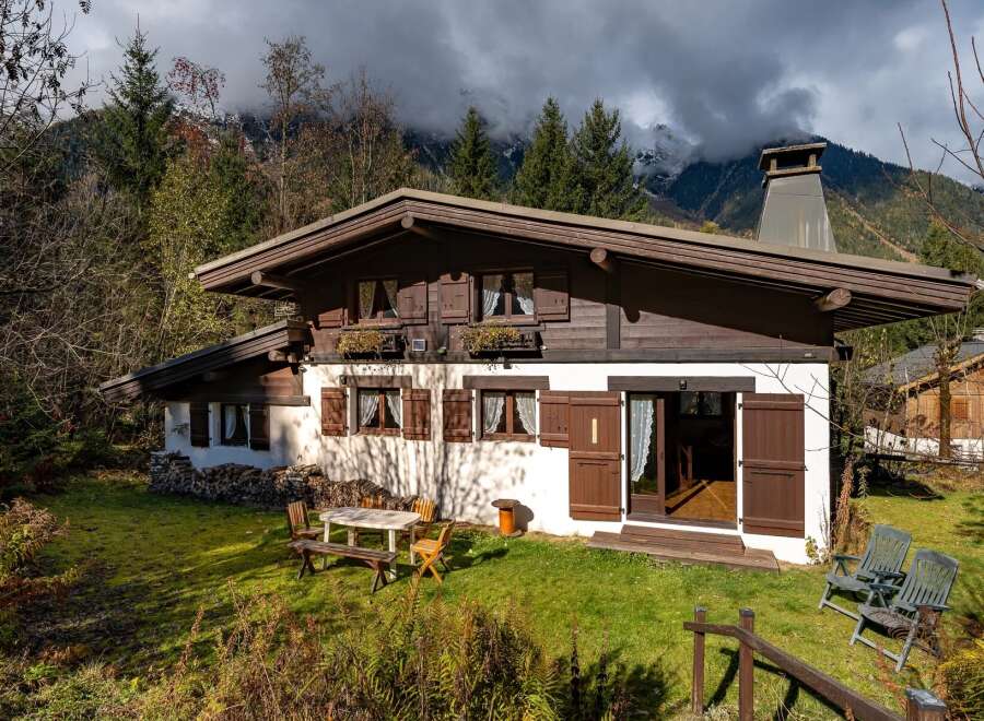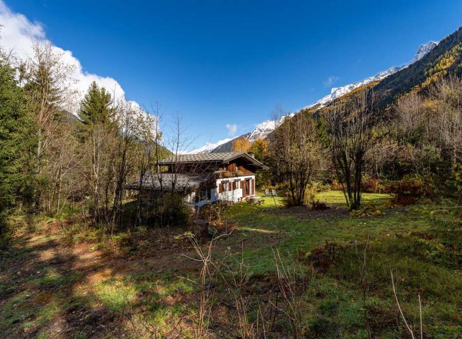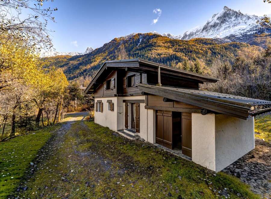 Chalet Pivoine is a 115 m2 chalet set on an impressive 2,400 m2 plot within walking distance of Chamonix centre. In its current configuration, the property comprises an open-plan ground floor with bathroom and toilet. Upstairs there are two double bedrooms and a large mezzanine. There is also a garage with a spacious cellar and utility room. The plot is expansive, featuring well-established forest, rockery, and a mill wheel. The chalet sits at the end of a private cul-de-sac. Views across the M...