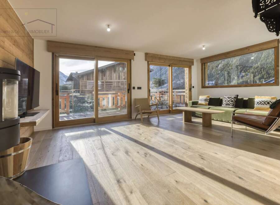 Discover this magnificent semi-detached chalet with a total surface area of 159.23m2 (132.40m2 loi carrez) located in Chamonix-Mont-Blanc, in the heart of the French Alps. Featuring four bedrooms and five rooms, this exceptional property combines modern comfort with mountain charm. The spacious living room features a cozy fireplace, perfect for relaxing after a day on the slopes. This chalet is fully furnished and equipped with top-of-the-range features, including double-glazed sliding windows,...