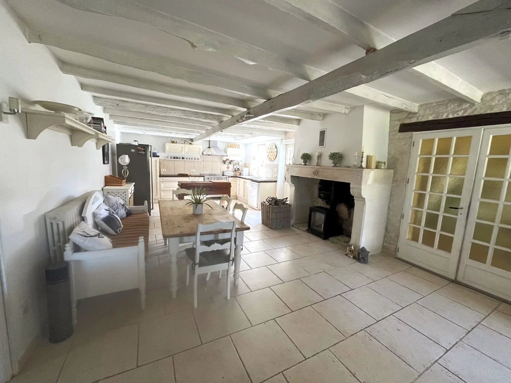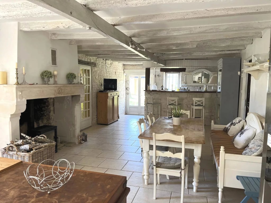EXCLUSIVE TO BEAUX VILLAGES! We are delighted to present this exquisite five-bedroom home located in the Charente. Upon arrival, you'll immediately feel, 'I am home.' The charming facade exudes French elegance, warmly welcoming you and your guests. Natural light floods the open spaces on the ground floor. The impressive open-plan dining and kitchen area features a bar, making entertaining easy. The kitchen leads to a spacious sitting/dining room with stairs to a large mezzanine floor that offer...