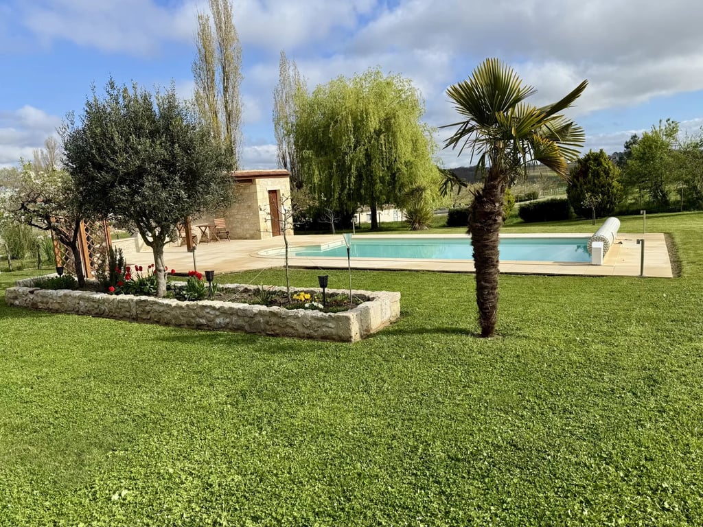 Nestled in a peaceful village less than ten minutes from Duras, surrounded by vineyards and the rolling countryside of the Gironde, this elegant stone farmhouse has been beautifully renovated to combine contemporary design with timeless charm. On the ground floor, you’ll find a spacious entrance, a large living room with a traditional fireplace, a kitchen/dining area and a modern shower room with WC. This level also features a generous summer kitchen opening onto the garden and covered terrace,...