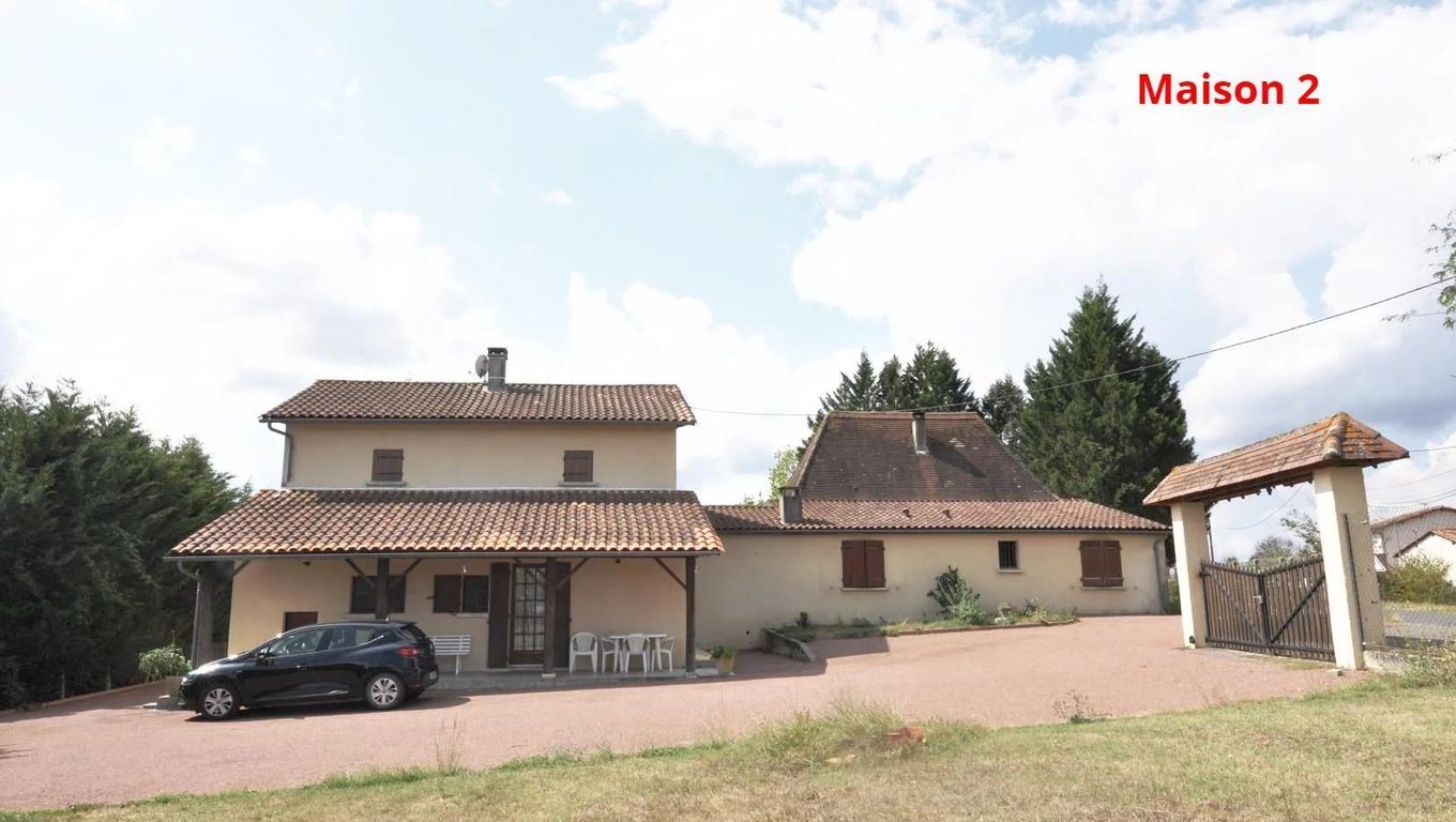 Set of two houses on a plot of over 3000 m2: First house: Beautiful Périgourdine of 105 m2 including a living/dining room with fireplace, a fitted kitchen, a storeroom, a bedroom on the ground floor, a bathroom, 2 attic bedrooms upstairs. A dressing room. A covered terrace (veranda), a cellar, a large garage with mezzanine. Tarmac courtyard. Oil-fired central heating, insert, double glazing. Second house of 110 m2 comprising a living room, a fitted kitchen, a cellar, a bedroom on the ground fl...