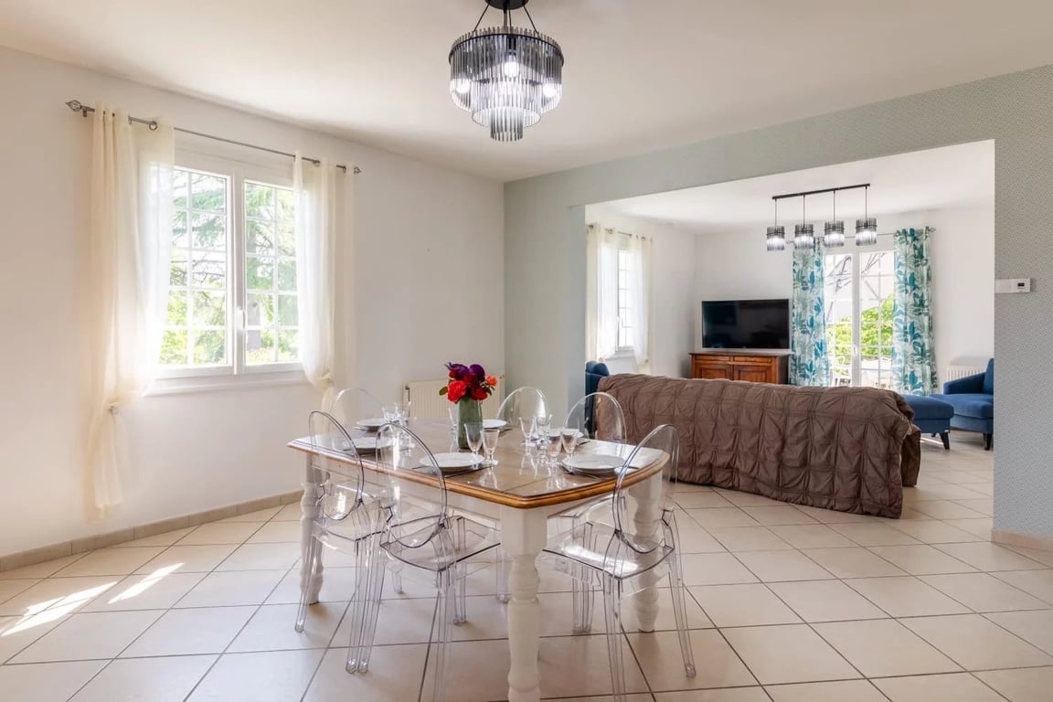 Located in a peaceful area on the heights of Eymet, this lovely single-storey house offers spacious rooms and excellent natural light. It features a large living/dining room with wood-burning stove, a semi-open fitted kitchen, three bedrooms (including one with en suite shower room), a second shower room and a separate WC. An adjoining garage, a large wooden terrace, and a fully enclosed garden with a storage shed complete the property. Ready to move into. Price including agency fees : 294 0...
