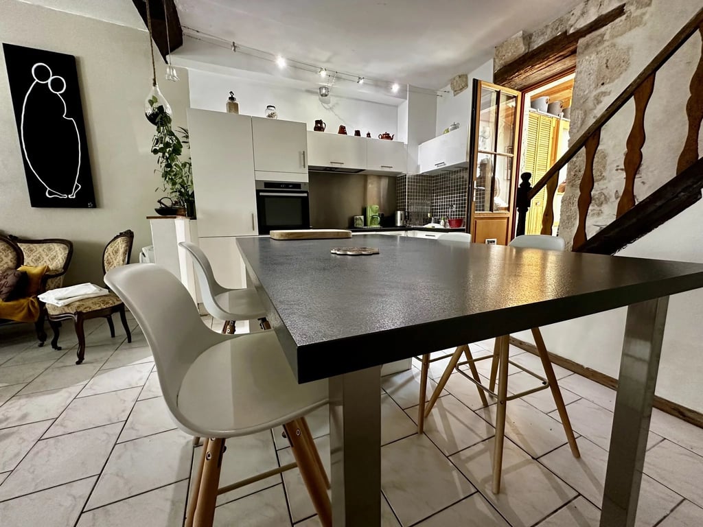 This 18th-century stone house in Eymet has been renovated with taste, maintaining lovely character features throughout. Offering 116m2 of living space across three levels, it includes a spacious living area with an open kitchen, a back kitchen, and a charming courtyard. Upstairs, you'll find a large bedroom with an en-suite and two additional bedrooms. The property is ideally located near the town square, blending historical charm with modern comfort. Price including agency fees : 224 700 € Pri...