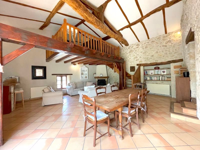 This classic Dordogne stone house was originally a barn, now converted into a very comfortable home. The living area is large, light and open-plan with a terraced dining area and beautiful double-height ceilings and exposed beams. There are 4 bedrooms and all the accommodation is all arranged on one level. It's just a 5 min bike ride from local shops, 2km from the Dordogne river and just 35 mins from Bergerac airport.There is a total 150m2 habitable space and all the accommodation is arranged on...