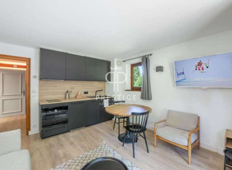 Lovely ground floor studio apartment, ideally situated just 1km from the centre of the village of Megeve and just 500m from the Rochebrune ski lifts. With a total living area of around 30m2, features include: open plan living/dining area with a fitted and equipped kitchen and access onto a large balcony, mountain corner and a bathroom.A shuttle bus is just 200m away, which goes to the ski slopes. The residence benefits from an idyllic setting and a beautiful geographical location and has a commu...