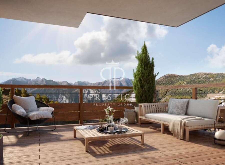 New and stylish 3 bedroom apartment in Alpe d'Huez in the Vieil Alpe area, in a privileged location close to the centre of the resort. Set back from the road, and with excllent access to the slopes, the 97,50m2 apartment is an ideal investment to enjoy the highest peaks of Alpe d'Huez. It is composed of a living room opening onto a fully equipped kitchen, an en suite bedroom, 2 double bedrooms, a shower room and two wc's. The spacious terrace of 18,48m2 affords beautiful mountain views with a we...