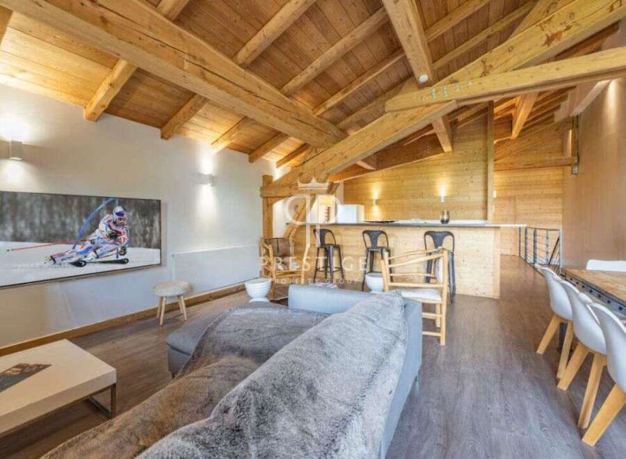 Sublime 148m2 duplex apartment, ideally nestled right in the heart of the authentic village of Huez, linked to the resort by the Huez Express gondola. The apartment is located in an intimate chalet offering absolute tranquillity, consisting of just 3 units. This magnificent apartment has 4 en-suite bedrooms and a large living room of 47m2.The exposed roof timbers give this apartment a warm and unique atmosphere. The generous volumes and abundant light make this a spacious and welcoming living sp...