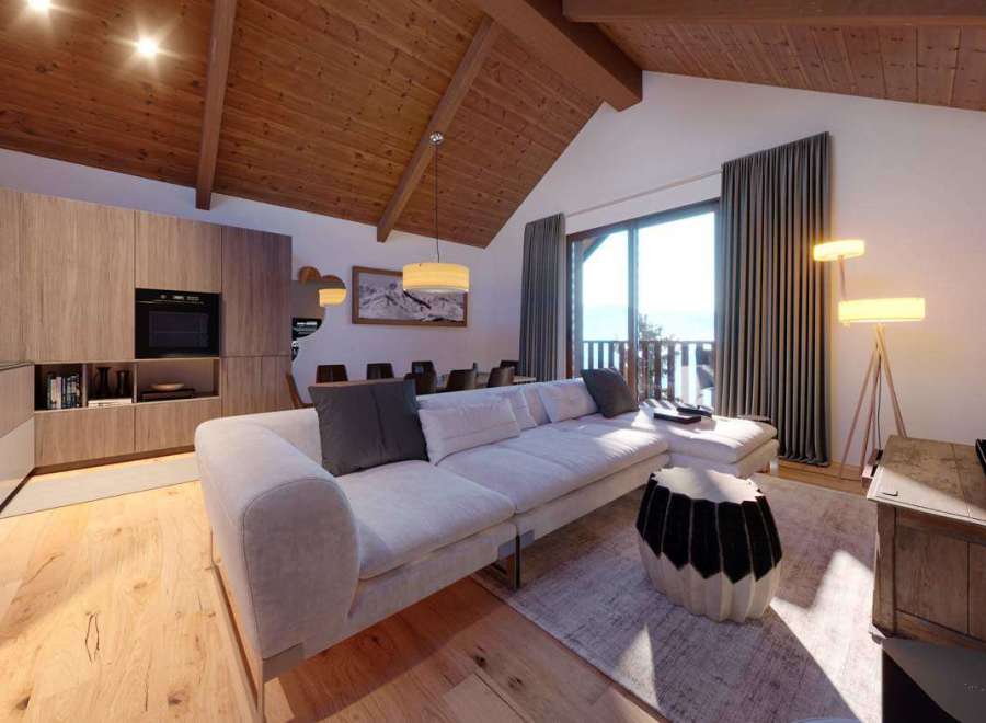 Set in a desirable part of the resort, this eagerly anticipated collection of new-build properties boasts a superb ski-in ski-out location and one of the best views in the entire resort. The nearest lift, the Comborciere, is just three minutes away on foot and a seven-minute walk will bring you to the village centre where you’ll find the main snow front and everything one could need for an extended stay.THE PROPERTYA modern take on Alpine style, this third floor apartment of 63.38 sqm has two be...