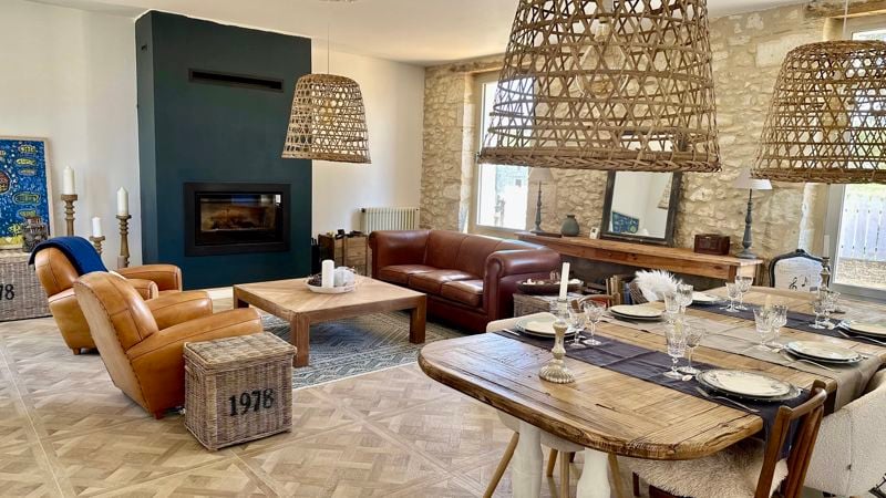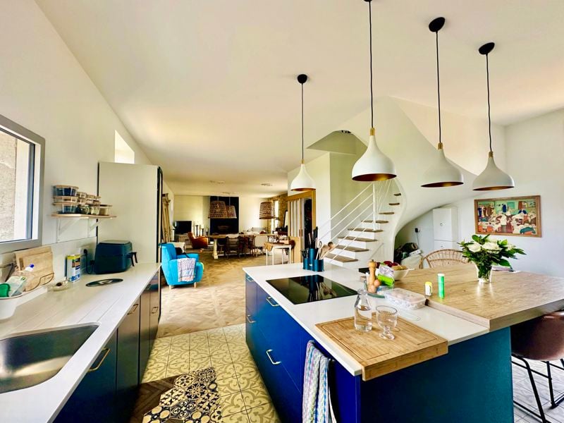 This beautifully renovated country home manages to strike the perfect balance between the traditional and the contemporary. The interior is stylishly decorated with bright and spacious living areas and a stunning kitchen. There's almost 2 acres of land, a large barn, studio, garage and wonderful countryside views. The bustling market town of Eymet is within easy reach, as is the airport at Bergerac.The entrance opens into a large open-plan kitchen, dining, and living area with high ceilings and ...
