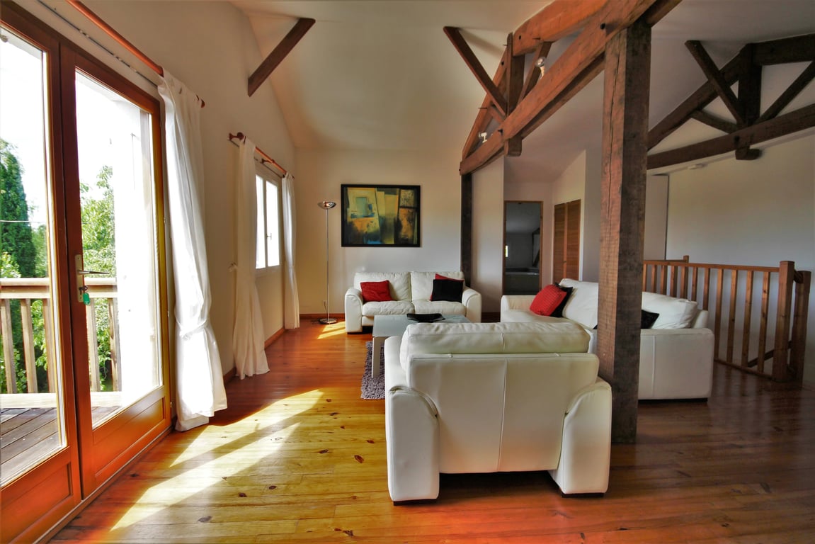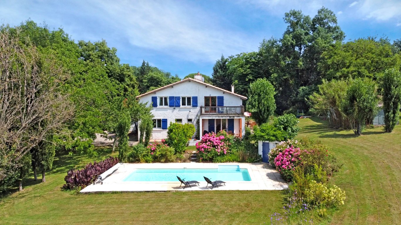 A well appointed and flexible, six bedroomed property set in 1.5 hectares of rolling countryside with a swimming pool. This spacious family home has very flexible accommodation to allow for multiple guests or easily for a small family with occasional visiting guests. It has beautifully designed and planted gardens with a feature carp pool, as well as the lovely swimming pool, orchard and vegetable garden. Lots of land with open views - a local farmer cuts some of the grass and takes the hay. A ...