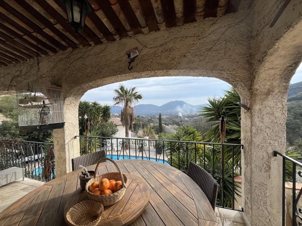 Very villa located on a plot of 1,254 m2 with a very pretty swimming pool surrounded by terraxz, an outdoor kitchen with a barbecue. You will access this villa which is in a dominant position via large steps leading to the upper terrace where the villa is located and with a superb south-facing view. On the ground floor, a fitted kitchen opening onto a living room and living room.Also a master suite with a dressing room and a bathroom and a WC. A mezzanine which can be used as an office. The 1st ...