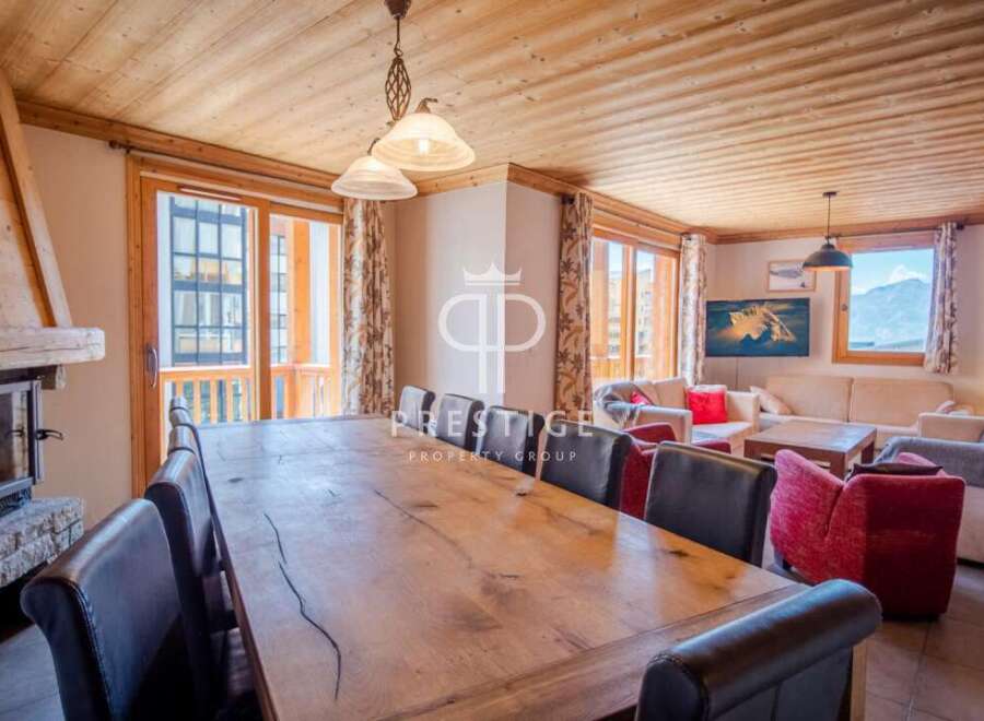Superb 6 bedroom apartment, which is located right in the heart of Val Thorens skiing resort, with a living area of 109m2 and offering a great investment opportunity. It comprises of a fully fitted and equipped kitchen opening onto a dining area and living room, 5 double bedrooms (4 with en-suite shower rooms), a bathroom and 2 separate WC's. This property is ideal for a comfortable holiday in the Three Valleys skiing area. You'll be seduced by the spacious rooms and the fireplace, which create ...