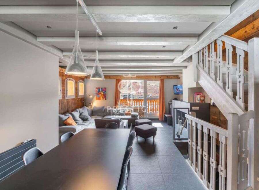 Exceptional 5 bedroom triplex apartment, which has been beautifull and entirely renovated using top quality materials by an interior designer. Ideally located close to the ski slopes and all amenities, this superb apartment offers all the comforts needed for a superb holiday with family or friends right in the heart of the 3 valleys. Entrance level: entrance hall with a ski room, bedroom, shower room, separate WC and an en-suite bedroom. 1st level: bright open-plan living area with a fitted kitc...