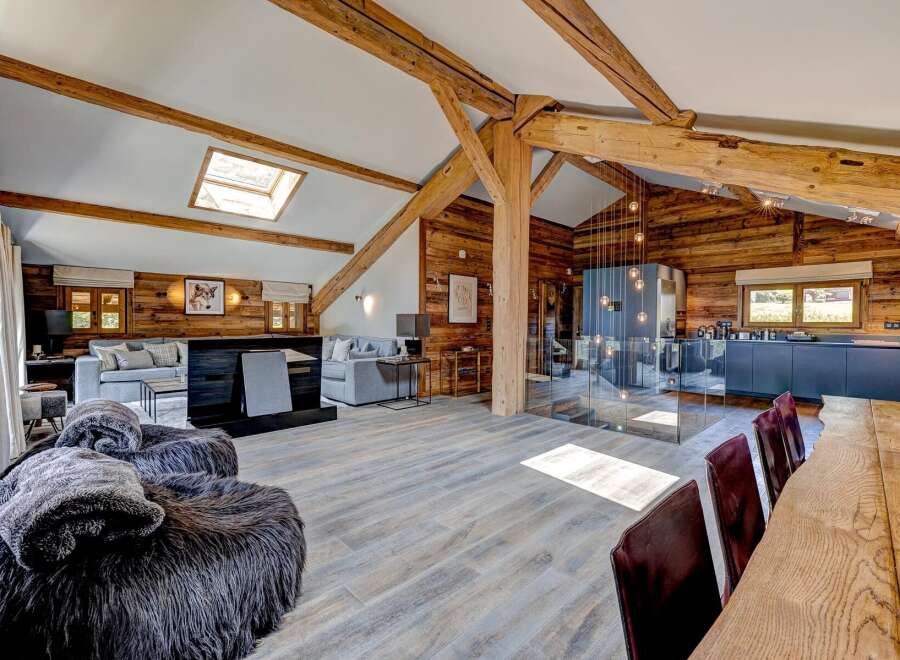 Ferme du Gron is a magnificent, recently renovated 6-bedroom farmhouse dating back to the late 1700s, situated a few minutes’ walk from the centre of Les Carroz. The farmhouse, extensively renovated in 2018, offers stylish accommodation while retaining its original character. The property spans three floors. The top floor is almost entirely open-plan with a double-height ceiling extending to the farm's exposed beams. This floor features an open kitchen with generous work surfaces and modern ap...