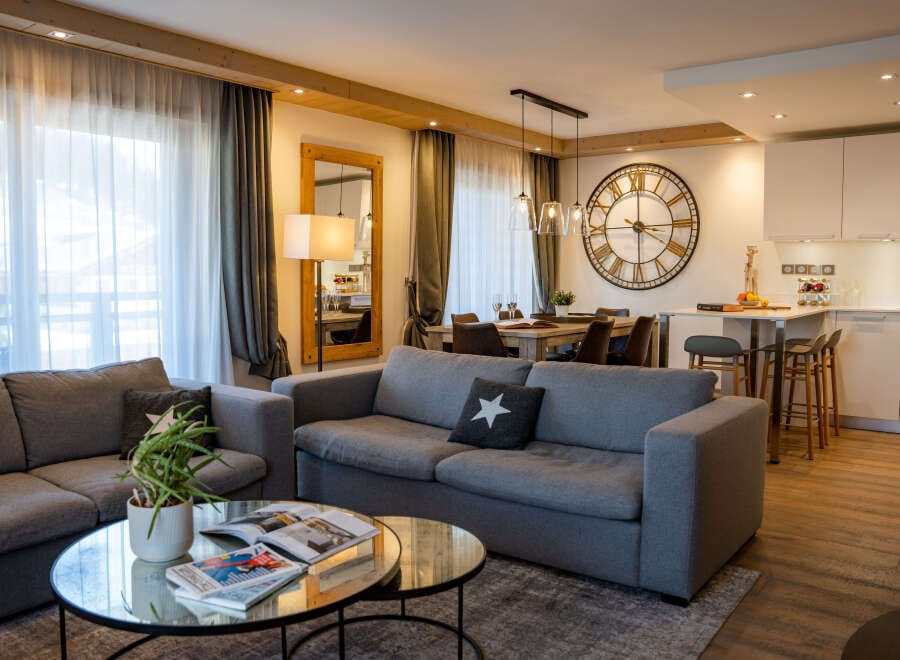 - SPECIAL OFFER -Recent and fully furnished 80m2 flat with 2 bedrooms and 1 cabin located in the superb Annapurna residence in the centre of Les Gets. It consists of an entrance hall with storage space, two double bedrooms each with its own bathroom, a cabin with bunk beds and an en-suite shower room.The beautiful and bright living room has a fully equipped kitchen, a dining area and a living area (with wood burner) and access to a balcony and its magnificent view of the village and the slopes. ...