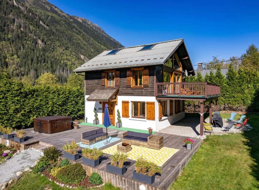 A spacious 5-bedroom chalet situated between Chamonix and Les Houches in the peaceful area of Taconnaz. This bright, attractive chalet over three floors offers generous living space and features 5 well-appointed bedrooms and 6 bathrooms so is perfect for accommodating large families or groups. Thoughtfully designed for comfort and relaxation, the property includes a sauna and an outdoor jacuzzi with fabulous views of the surrounding mountains. This adds to its appeal both in winter and summer. ...