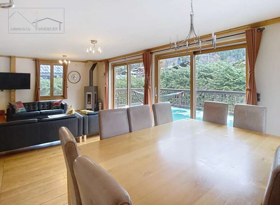 Chalet with 126 m2 of living space comprising: entrance hall, 3 bedrooms with en-suite shower rooms, a toilet, on the first floor a spacious living room vae cc kitchen opening onto a terrace, a sauna with shower, on the top floor: two bedrooms with two bathrooms/toilet.The chalet has generated a proven annual rental income of €76k to €86k between 2013 and 2019. Based on current rents in Chamonix, the chalet should generate rental income of €120k per year.Located on a 941 m2 wooded plot, the owne...