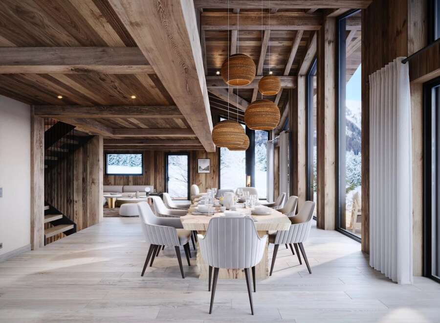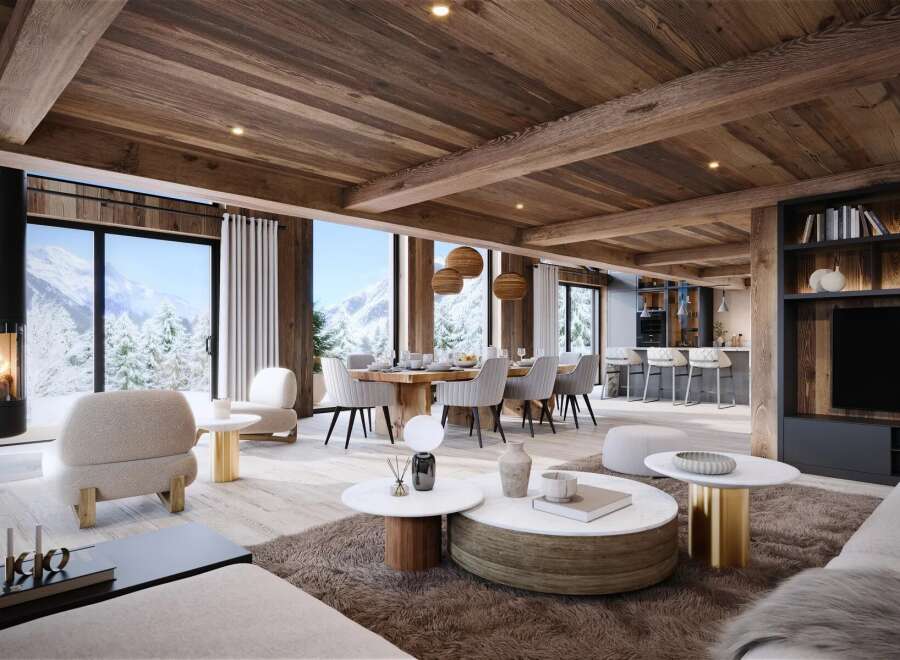 Chalet Makalu is a stunning, new-build, 5-bedroom chalet in Les Tines, close to La Flégère ski area and the Chamonix golf course. Due to be completed in December 2026 the chalet will be built on 4 levels with the main living area being on the first floor. There will be an impressive double-height living area with floor-to-ceiling windows offering fantastic views of Mont-Blanc, a top-of-the-range open kitchen and an ensuite bedroom. The basement will have a dormitory, a shower room, a substantia...