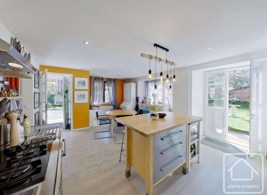 **Charming Semi-Detached Village House in the Heart of Lullin** Ideally located in the vibrant village of Lullin, this appealing property faces south-east, enjoying sunshine throughout the day and delightful views of Mont Billiat across a quiet lane. **Ground Floor** The front door opens, via a small entrance area, into a bright open-plan kitchen and dining space, where French windows lead directly onto the south-facing garden—perfect for alfresco meals and morning coffee. A large archway open...