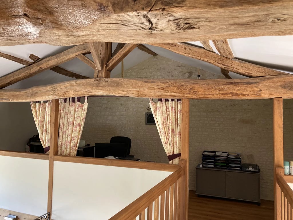 EXCLUSIVE TO BEAUX VILLAGES! This quality barn conversion, set on over 1 acre in the heart the village, has a heated pool and a barn. The front door opens into a huge dual-aspect farmhouse kitchen (40m2) with tiled floor, exposed beams, fitted kitchen units, double-height ceiling and glazed doors to the enclosed courtyard and pool to the back of the house. The room is easily large enough for distinct kitchen, sitting and dining areas. Off the kitchen is the boiler room. To the right of the k...