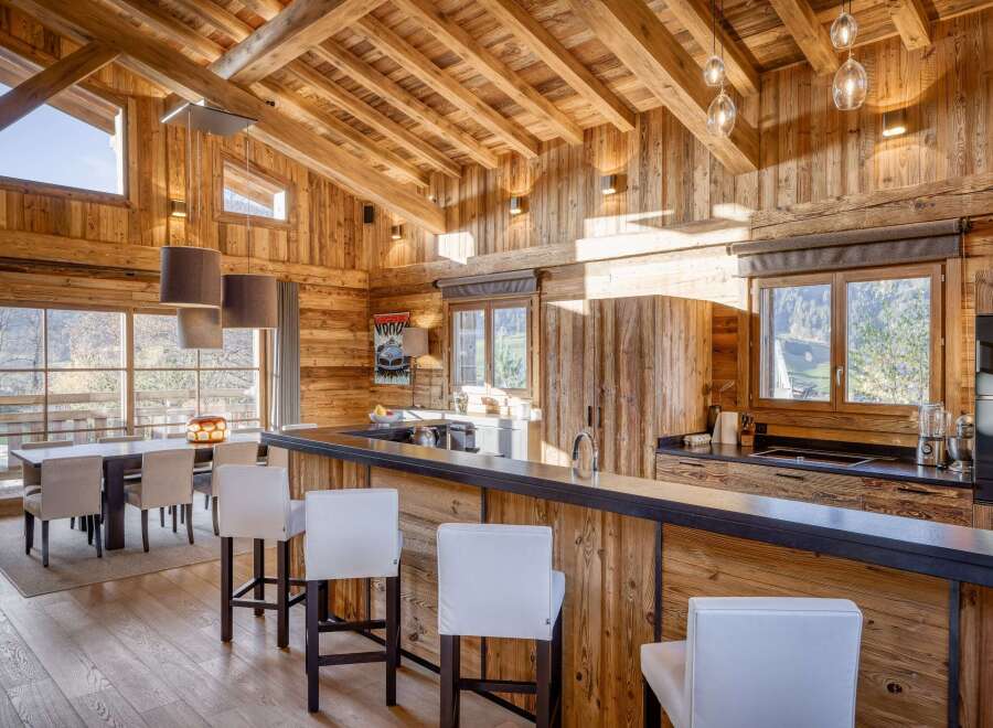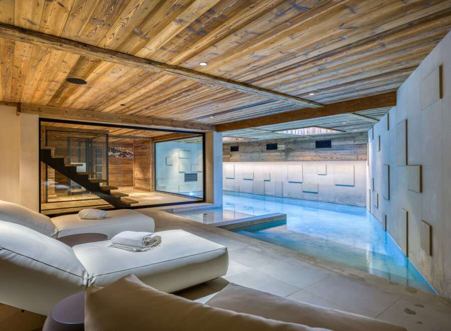 This exceptional chalet, covering approximately 450 m2, embodies alpine living at its most refined. Designed to accommodate up to 10 adults and 4 children, it is available for seasonal rental with top-tier hospitality services. On the lower ground floor, you will find a garage, a large ski room with boot warmers, a laundry room, a cinema room with Apple TV, and a children’s dormitory with adjoining bathroom. The wellness area includes a gym, swimming pool with jacuzzi, and a sauna. The ground fl...