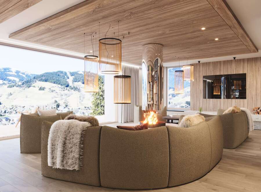 The Chalet du Mage is a prestigious residence, a perfect fusion of authentic Alpine charm and sophisticated contemporary design. Its exclusive location provides unobstructed views of the Megève valley. Designed to combine luxury and comfort, this chalet offers elegant living spaces and state-of-the-art wellness facilities for a truly unique experience. Entering from the upper level, a spacious exposed-beam hall with a glass floor floods the interior with natural light. Two en-suite suites open o...