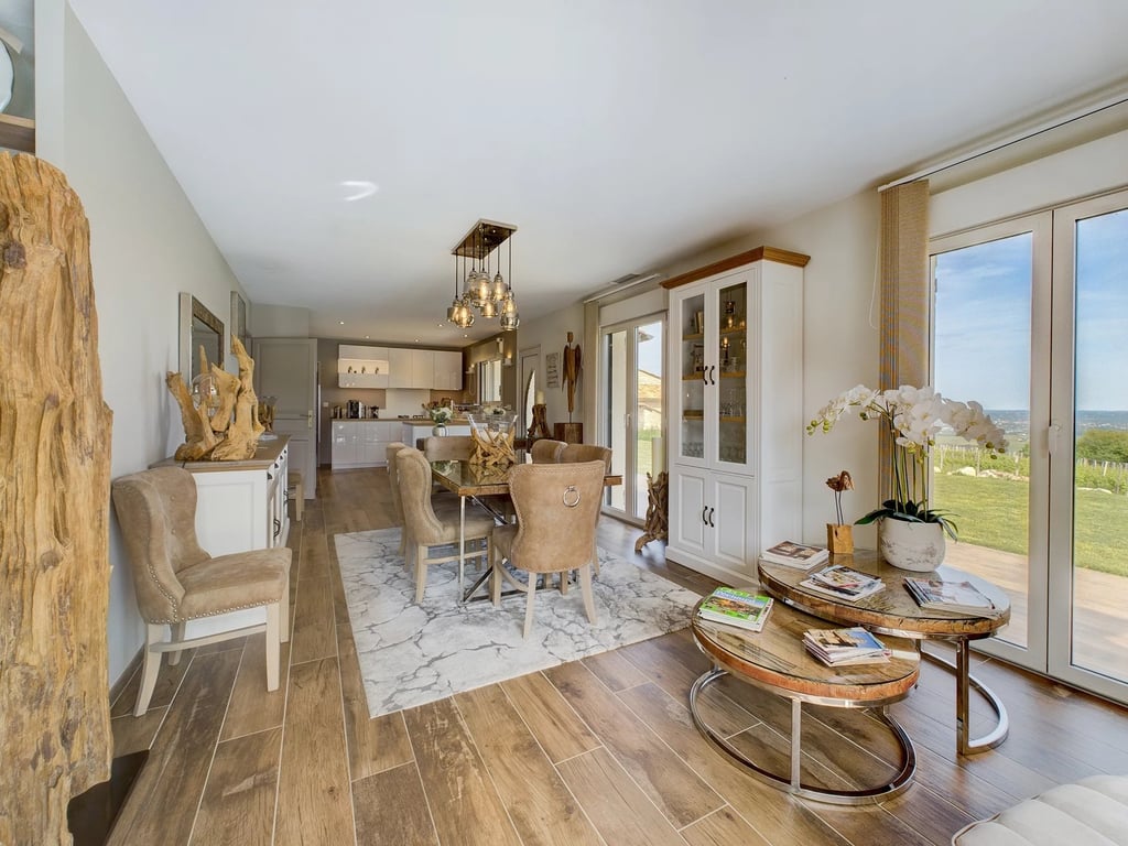 This beautiful property offers stunning views over the Bergerac vineyards and is located on a no-through road for perfect peace and tranquillity. A very sociable house with open plan living and dining areas with double glazed doors leading you to the stunning inground swimming pool (8 x 4 m), spacious patio and covered terrace with exterior kitchen - not forgetting the covered spa and unique sauna, outside toilet and electric bicycle store. The gardens are easily maintainable, with a robotic ...