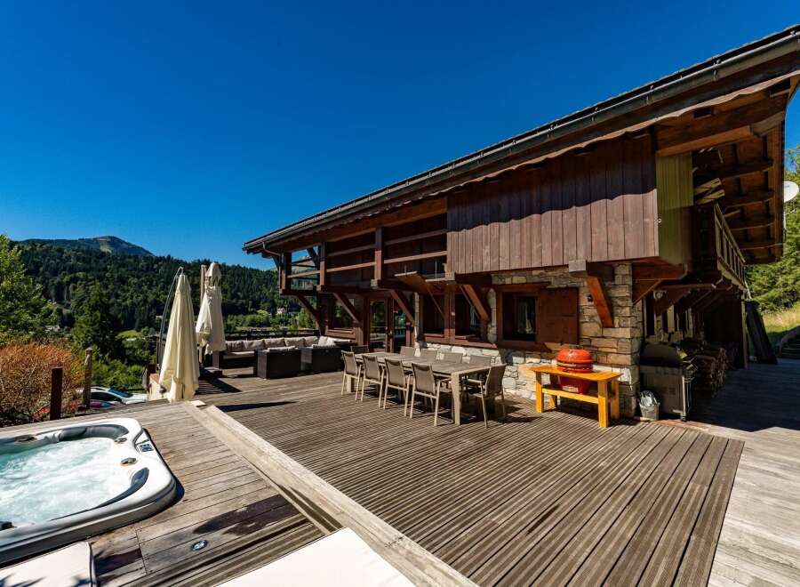 Chalet Mistral is a 5-bedroom chalet of exceptional quality, in an exclusive position above Montriond with panoramic, uninterrupted views across Morzine. The chalet extends to over 300m2, arranged across three floors, with a striking double-height living space and large south-facing terraces and balconies that enjoy sunlight throughout the day. The property offers both style and substance, combining high-end finishes with generous volumes. There are 5 spacious ensuite bedrooms, including a mast...