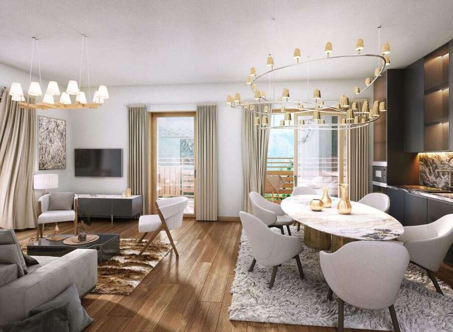 This new-build four-bedroom apartment forms part of Chalet L'Aubergade, a contemporary alpine development positioned directly on Morzine's snowfield at the base of the Pleney ski lift. The property provides immediate ski-in, ski-out access with unobstructed views across the resort and surrounding mountains. Accommodation The 75.96 square metre apartment features an open-plan living area with integrated kitchen and dining space, plus separate lounge area with direct access to a 13.03 square metre...