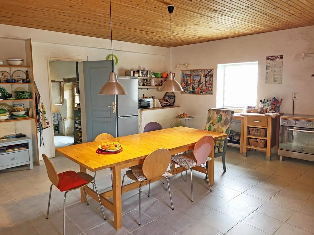 This large and charming, stone property with walled courtyard garden, is a haven of peace and tranquillity in the centre of a village with a bakery and grand, gothic, 15th century Chteau, just 10 minutes from Rouiilac and 15 from Jarnac. On the ground floor the large kitchen dining area, which opens on to the south-west facing garden, leads through to the cosy, double aspect, living room (also overlooking the garden) with wood-burning stove, and, from its rear to the workshop and storage area, w...