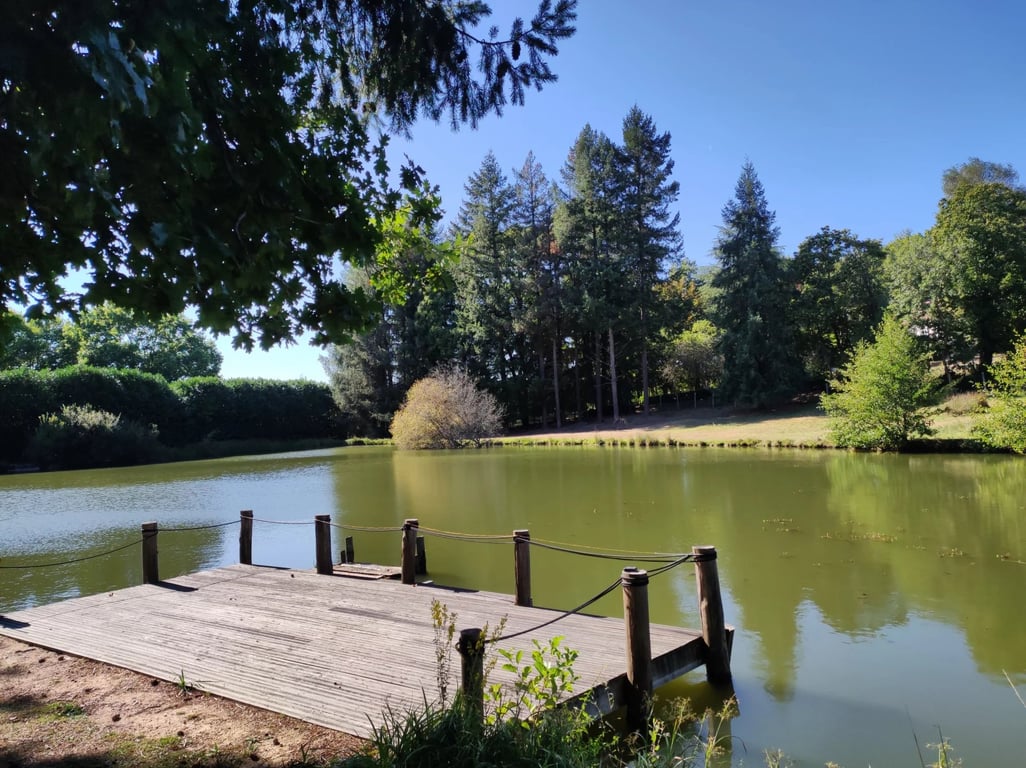The villages of Nontron and Augignac are located in the heart of the Nontronnais region between forests, meadows and ponds. And it is here that this property is hidden from view and yet close to the networks. You enter a bucolic setting of 2 hectares of nature and leisure that invites you to relax at the edge of the pond after having enjoyed the comfortable size of the swimming pool and the restaurant. The wooded grounds offer -a mini golf course, - a tennis court, - a sports hall. The co...
